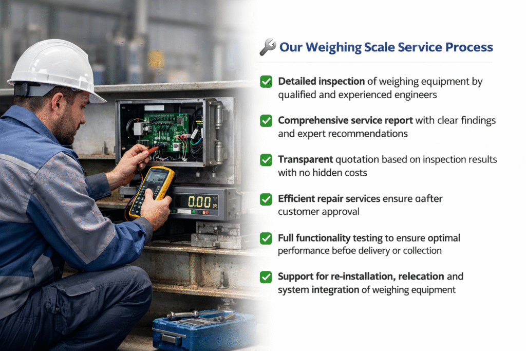 We service industrial scales, weighbridges, laboratory balances, and retail weighing equipment.